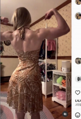 ・【フォト・動画】”見返り美人”が突如ムキムキ背中に変化!チラ見せ脚も脅威のマッスル