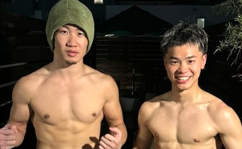 朝倉未来(左)と那須川天心(右)はマッスルツーショット写真(24年7月、朝倉未来インスタグラムストーリー)