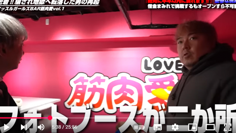 これが借金をして開店するという「マッスルガールズBAR筋肉愛」の内装(『ノッコン寺田』YouTubeチャンネル)