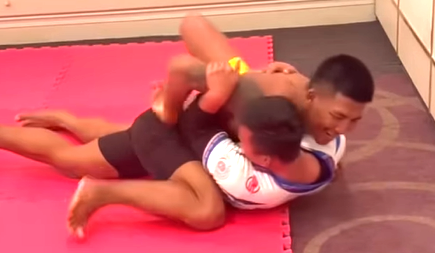 武尊を直前に控え、なぜかロッタンはスーパーレックとグラップリングスパーを行った(ロッタンのFacebookより)