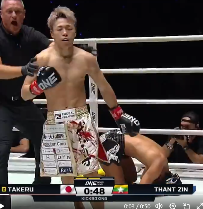相手は悶絶ダウン、武尊は残心 @ONEChampionship