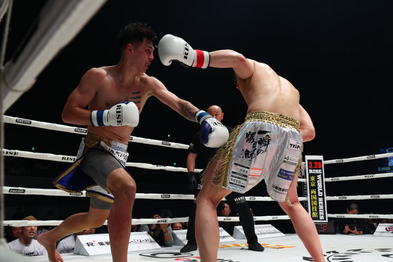 宇佐美のパンチに相手がよろける