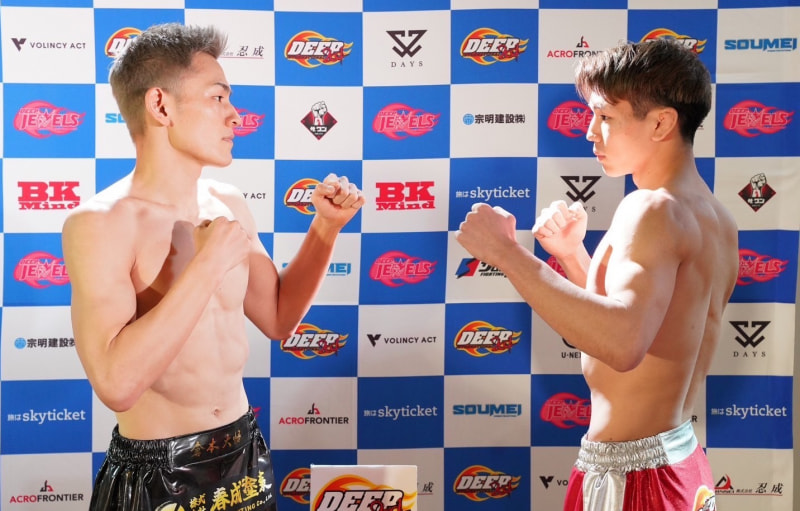 計量パスした倉本(左)と渡部(右)のフェイスオフ