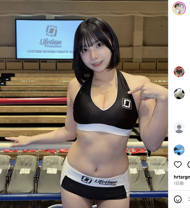21日、ラウンドガールを務めた葵くみ(@mitsuhashi_zzより)