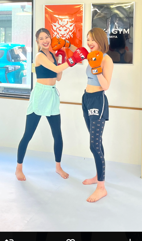 同じKrushガールズの萩野心とキック練習(@akiho0325)