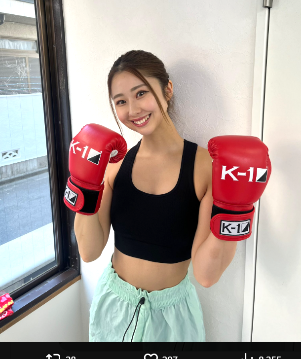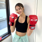K-1ジムでキックボクシングの練習に取り組む(@akiho0325)