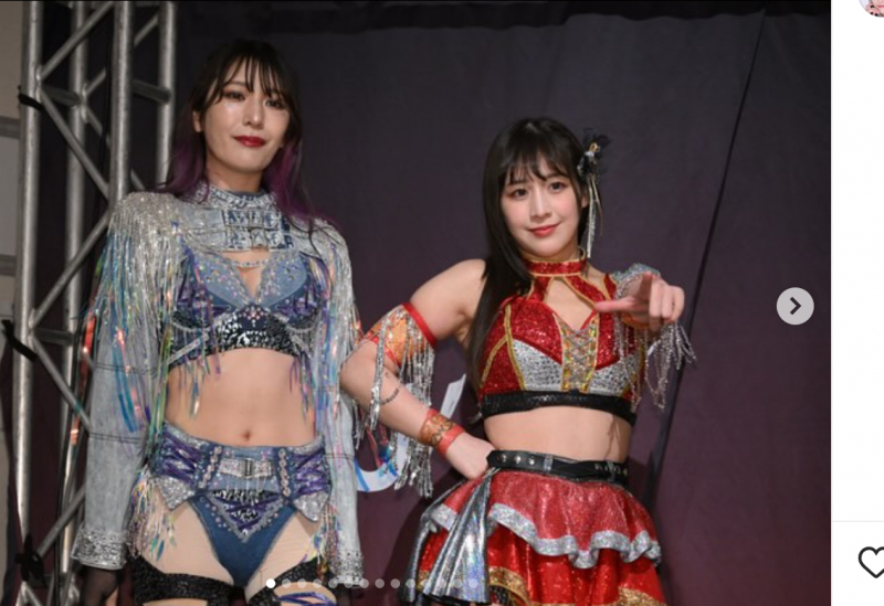 上福ゆきとのタッグチーム「Ober Eats(オーバーイーツ)」で4.18ベガス大会でタイトル挑戦をする(@wakanauehara_officialより)