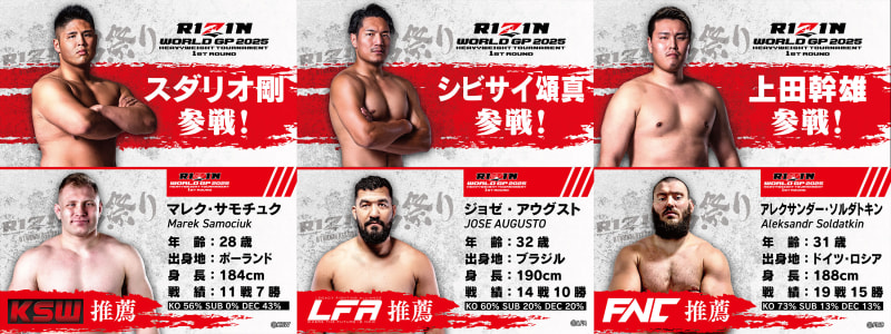 8人制トーナメント「RIZINヘビー級GP」に参戦する選手たち