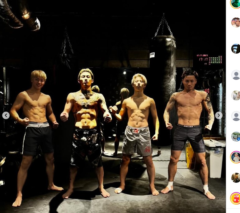 23年12月、兄・平本蓮(左から2番目)らと並ぶ平本丈(右から2番目)@joe_hiramotoより
