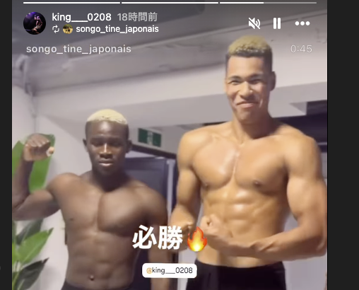強化された肉体を見せたエドポロキング(右)と練習相手のセネガル相撲王者