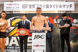 3月29日(土)愛知県国際展示場で開催される『3150×LUSHBOMU vol.4』の前日計量と会見が、28日に名古屋市内のホテルで行われ、IBF世界フライ級タイトルマッチに出場する同級王者アンヘル・アヤラ(24=メキシコ)とIBF世界ライトフライ級王者・矢吹正道(32=LUSH緑)をはじめ、出場全選手が計量をクリアした。