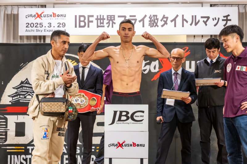 王者アヤラがマッスルポーズ