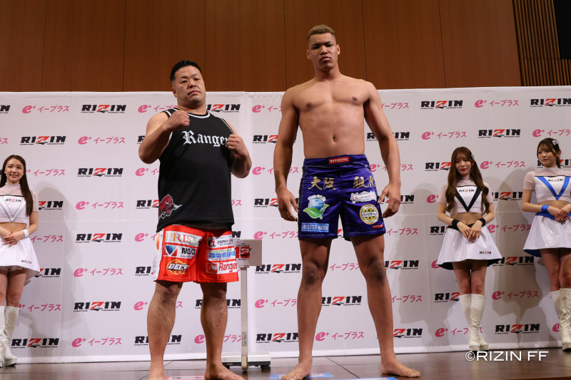 身長24cm差の酒井(左)とエドポロ(右)が並ぶ
