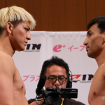 逆三角形ボディの鈴木がマッスルポーズ!ⒸRIZIN FF