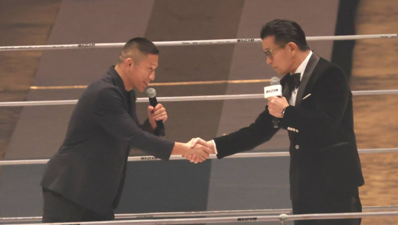 UFCのベルトを獲り、RIZINのリングにも見せに来ると榊原代表と握手
