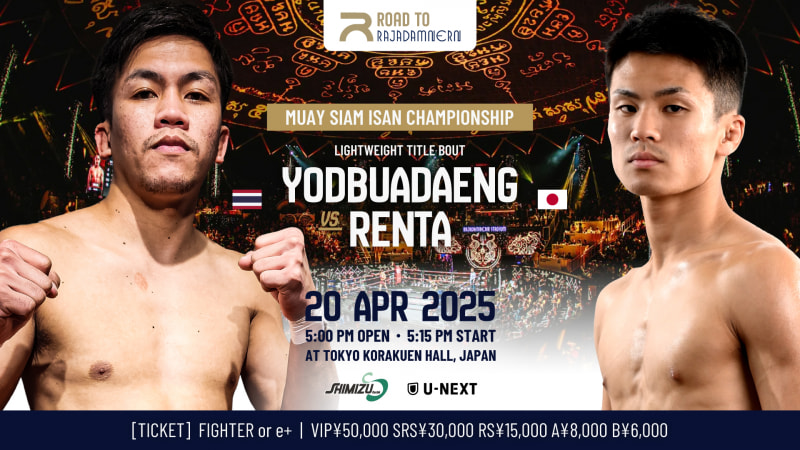MUAY SIAM ISAN ライト級タイトルマッチで対戦するヨーブアデーン(左)とレンタ・ウォーワンチャイ(右)