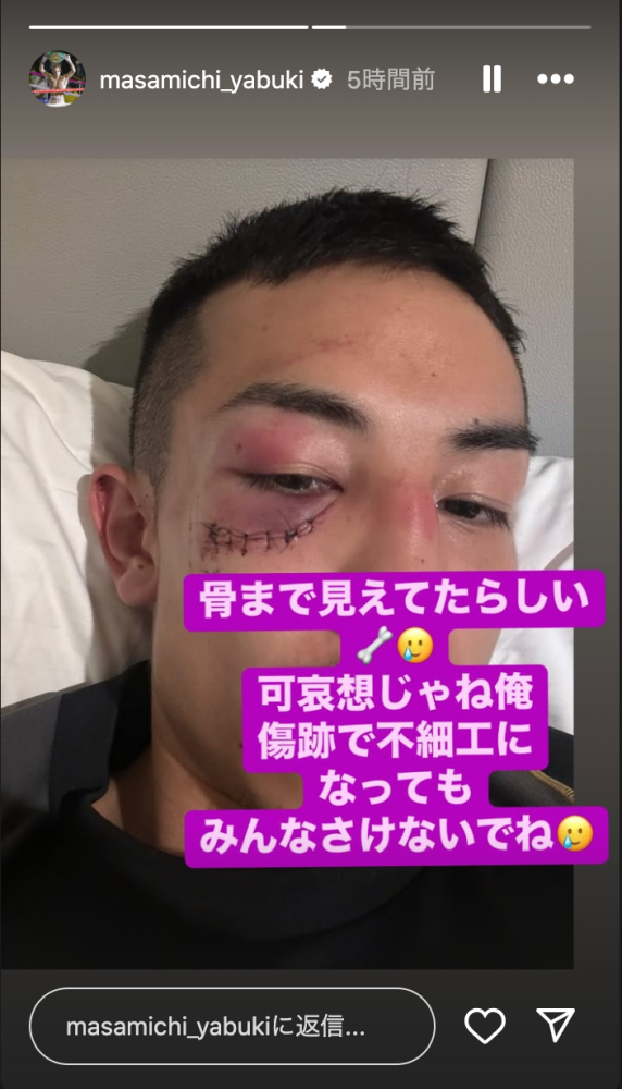 傷口を縫った後の顔@masamichi_yabukiより
