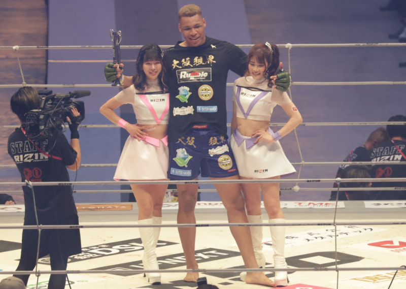 身長2メートル超のエドポロキングと悠(左)、KOU(右)