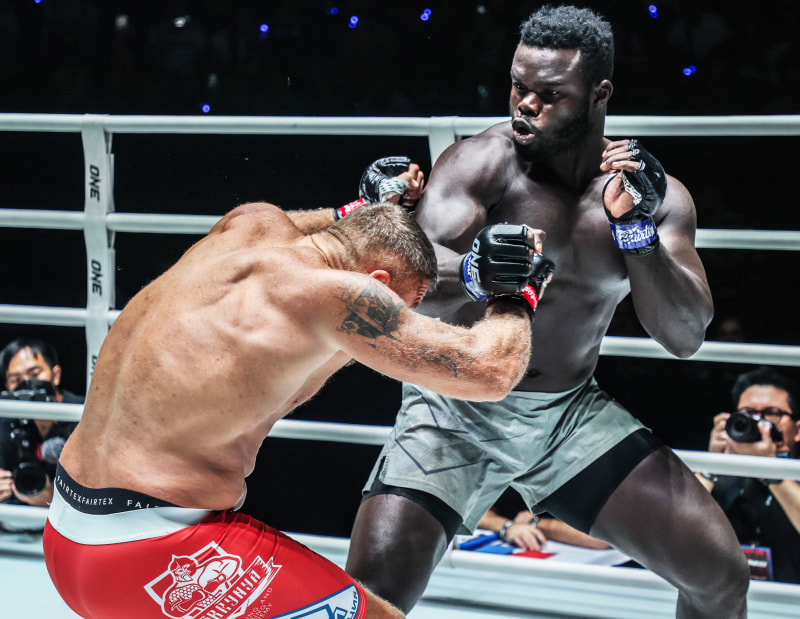 “セネガル相撲の英雄”ケイン(右)、マリキン(左)に勝利しヘビー級新王者に©️ONE