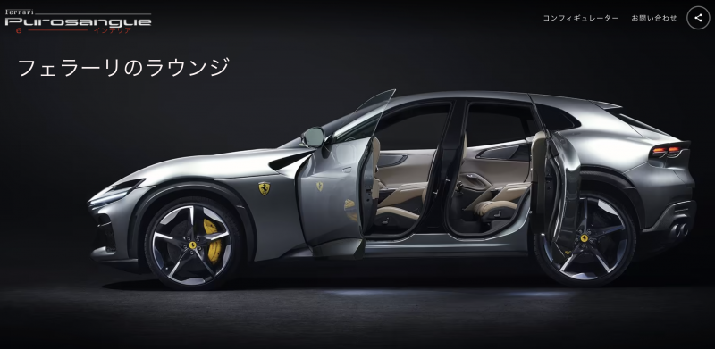 2ドアに見えて実は4ドア。フェラーリ・プロサングエ。スポーツカーのこだわりだ。(フェラーリー公式サイトより)