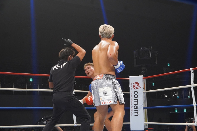 谷川のパンチで相手がダウン!