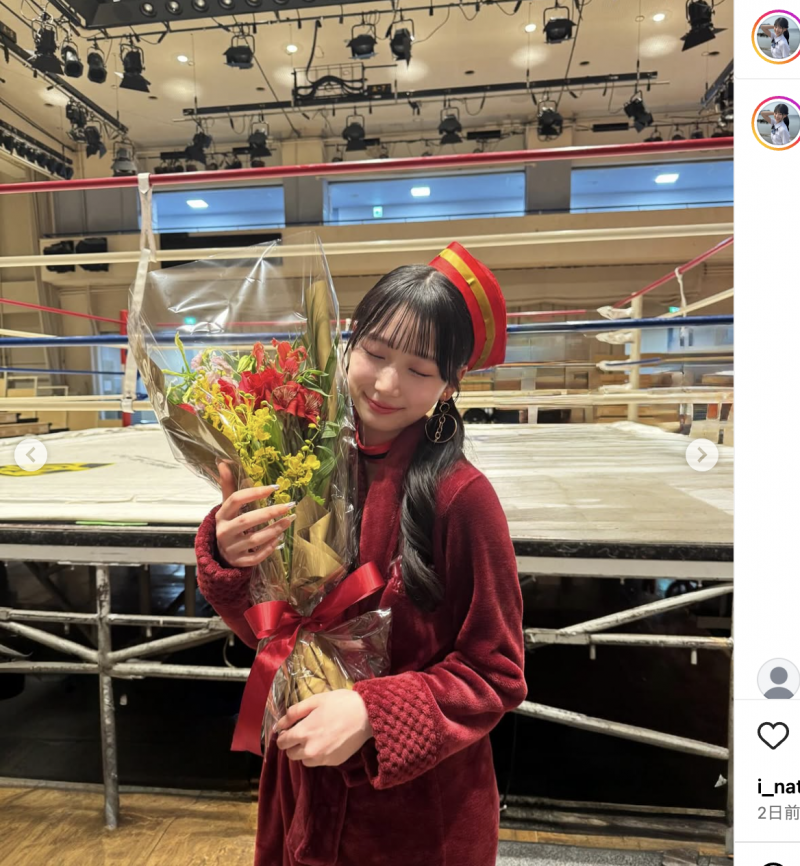 花束を持つ百田(@shiori_08.19より)