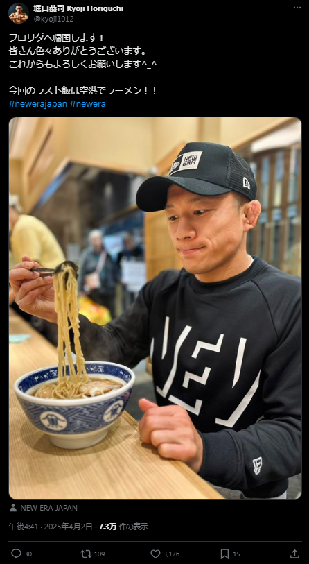 せたが屋のラーメンを食べる堀口(@kyoji1012より)