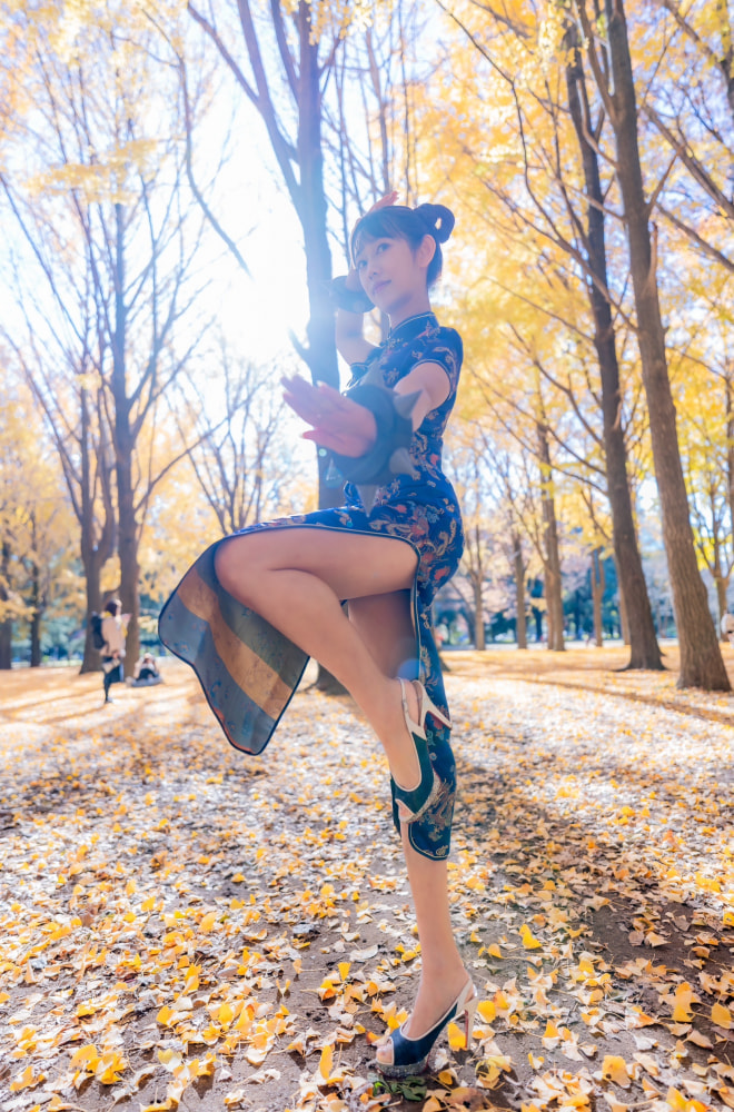 昨年秋、チャイナドレスと太もも@mina_horie