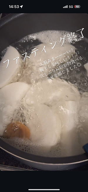 ファスティング終了。食事は大根「あまーい」と喜ぶ@mina_horie