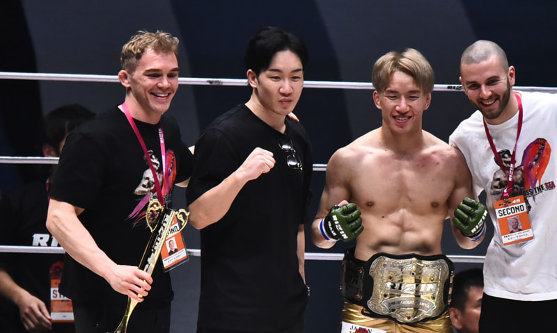 朝倉海(右から2番目)のRIZIN王座獲得にも貢献したJTTビリーコーチ(左)が帰国するという