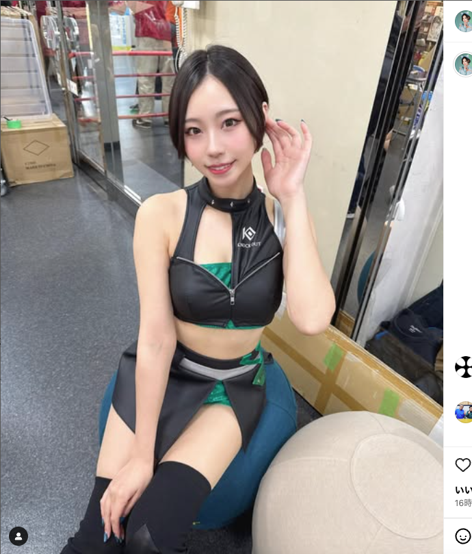ラウンドガール衣装の有栖、太腿チラ見せ@miiion_officialより