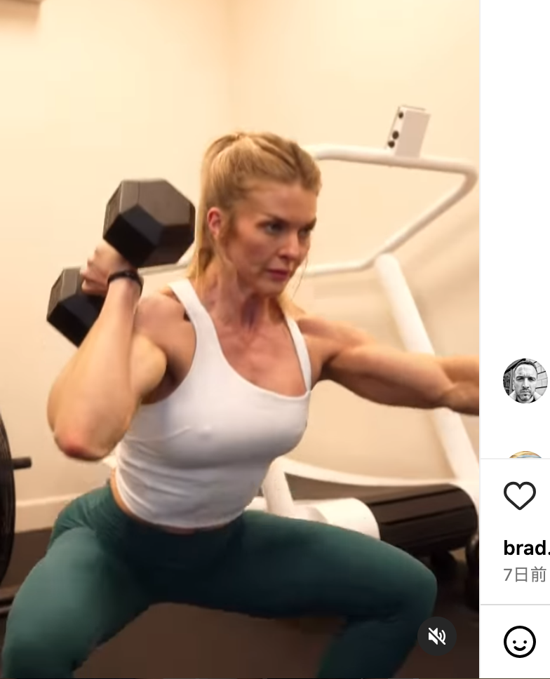 美しいフォームでダンベルワークを行うブルック@brookeenceより