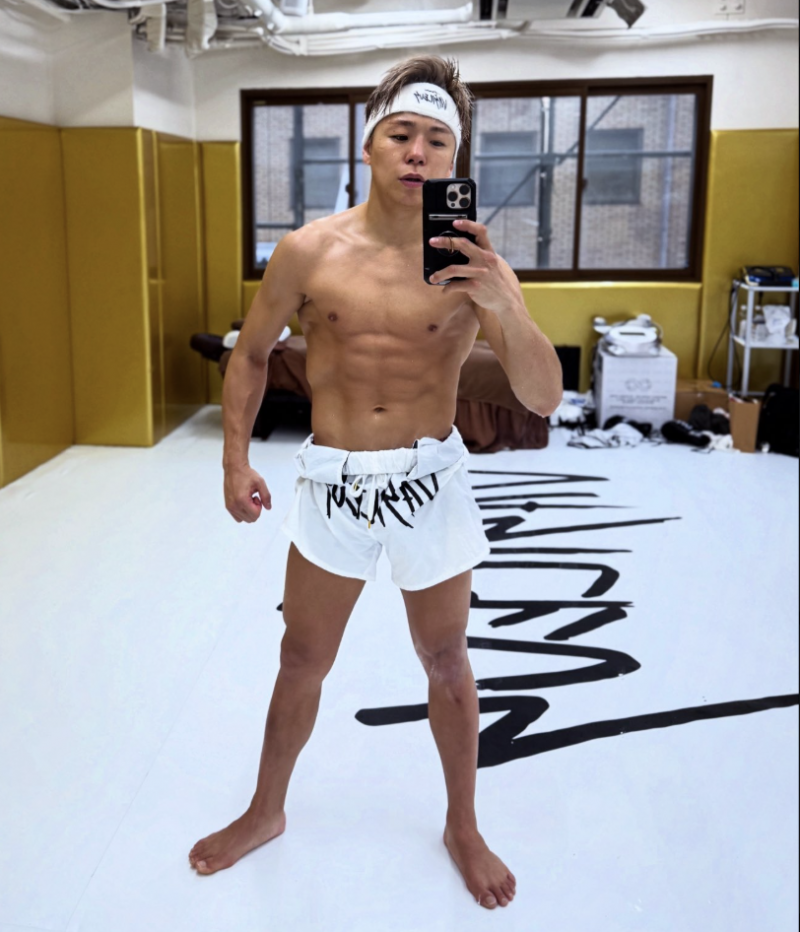 バキバキボディで練習に復活した武尊(4月8日、@takerusegawa)