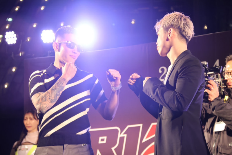 萩原(左)と西谷(右)がファイティングポーズで向かい合う