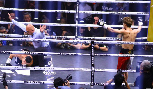 井上vsパヤノ、開始わずか70秒、右ショートストレートでKO