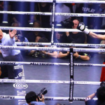 タパレス、5R、井上のショートの右で最初のダウン(TOPRANK Xより)