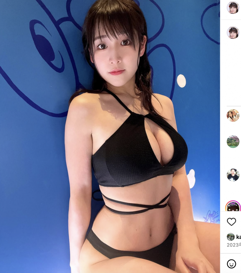 黒ビキニ姿の上原わかな(@wakanauehara_officialより)