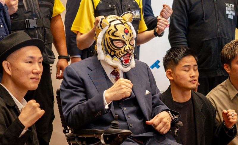タイガーマスク姿で登場した「大熊警備隊」顧問・佐山聡氏