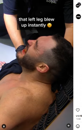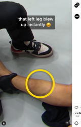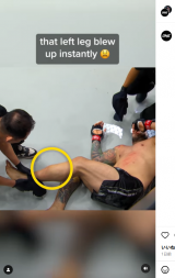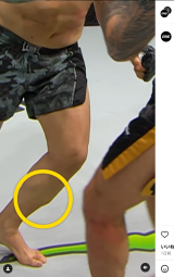- カーフキックを蹴った直後、スネがぽっこり(@onechampionshipより)