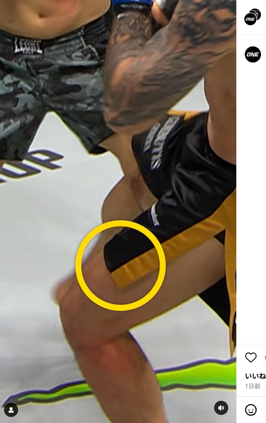 カーフキックを蹴った瞬間(@onechampionshipより)