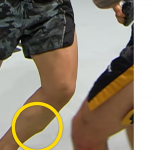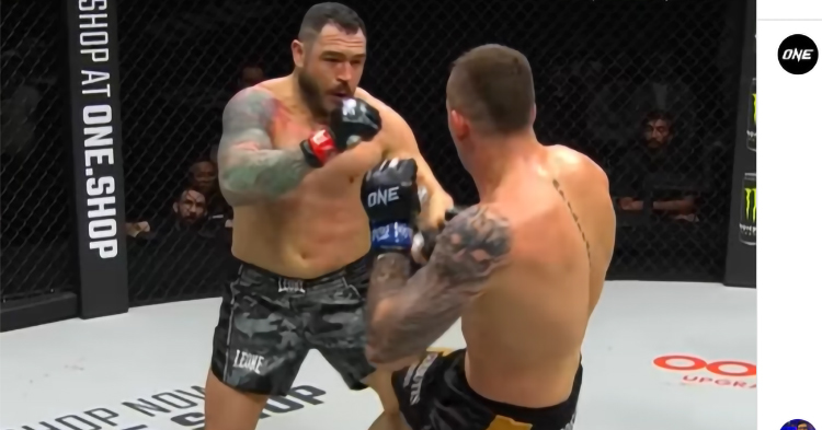 グリシェンコ(右)がカーフキックを放つ瞬間(@onechampionship より)