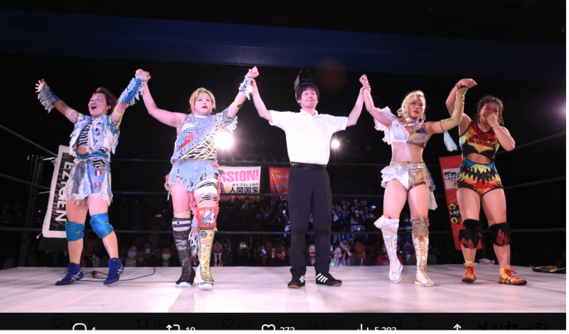 山岡はビクトリア弓月と組み、高橋奈七永&中西百重と対戦(@y_seri_1113)