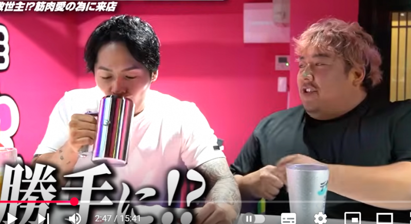 重さ10kgの鉄のジョッキを片手で軽々と持ち、2秒で飲み干した(『ノッコン寺田』YouTubeチャンネル)