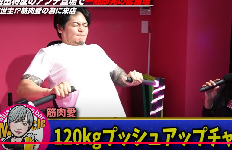 120kgのプッシュアップも5回行いクリア(『ノッコン寺田』YouTubeチャンネル)
