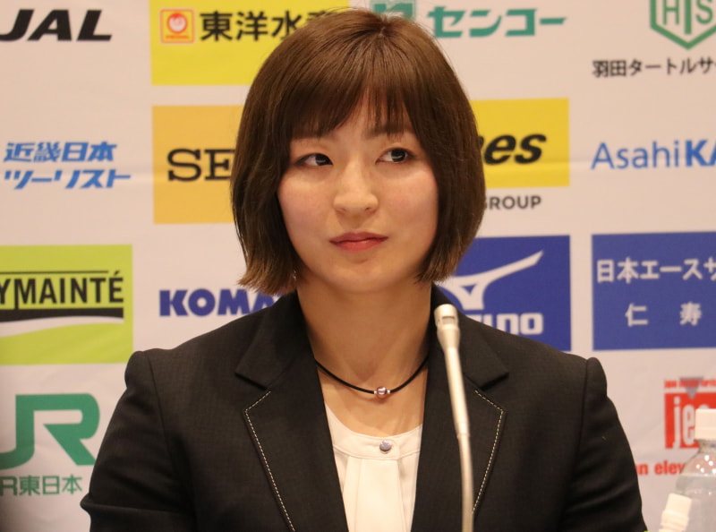 記者の質問に耳を傾ける角田