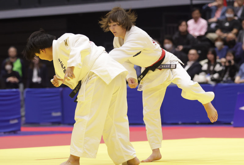 超重量の相手の攻めに足をかわす角田夏美