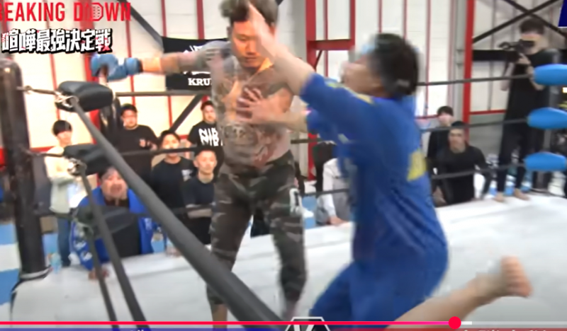 モギはスパーリングでパンチをぶん回してのKO勝ち(『朝倉未来のYouTubeチャンネル』)