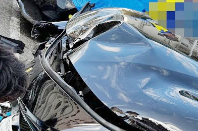 フェラーリのボンネットは大きく曲がり浮出している(皇治YouTubeより)