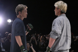 - 朝倉(左)と鈴木(右)のフェイスオフ