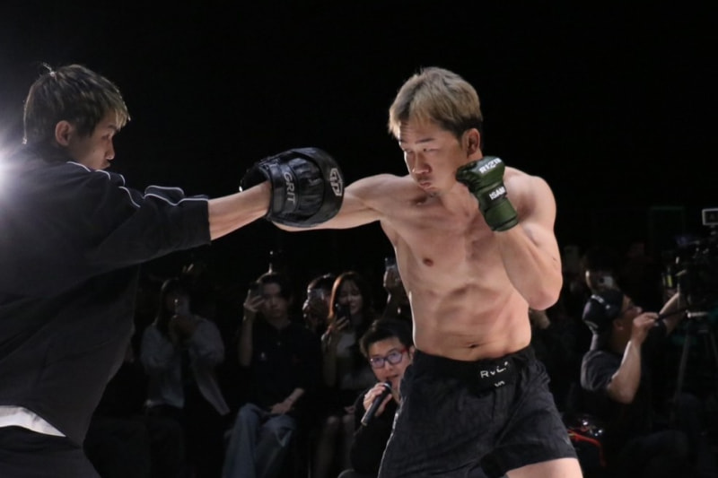 朝倉がミット打ちを披露